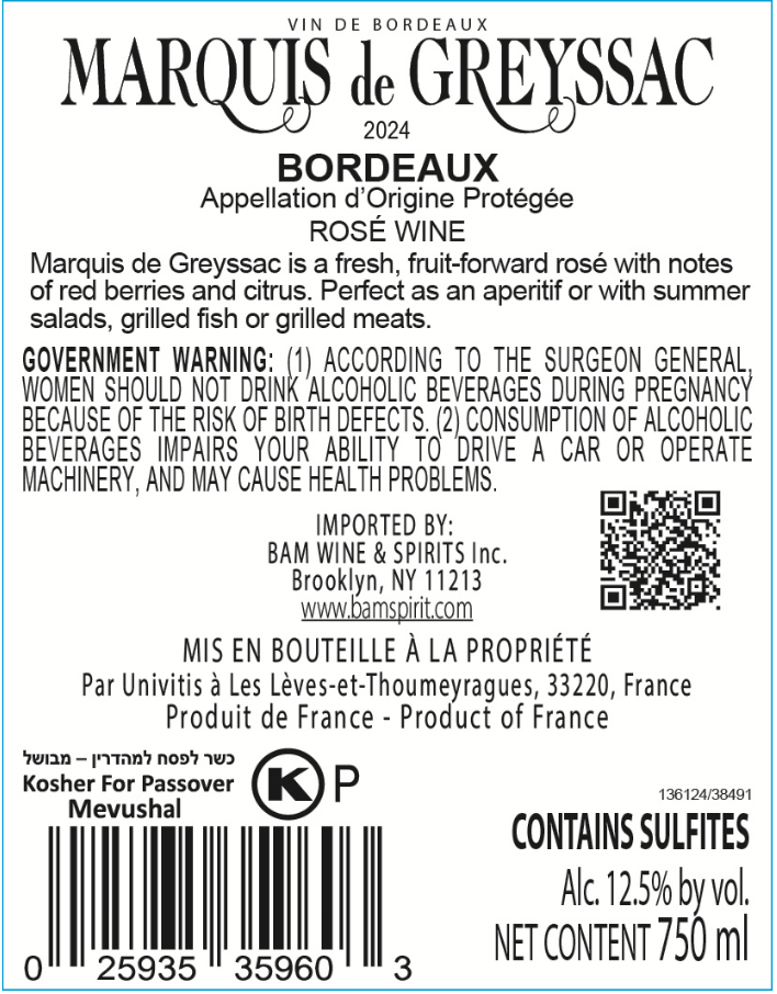 Marquis de Greyssac AOP Bordeaux Rose 2024
